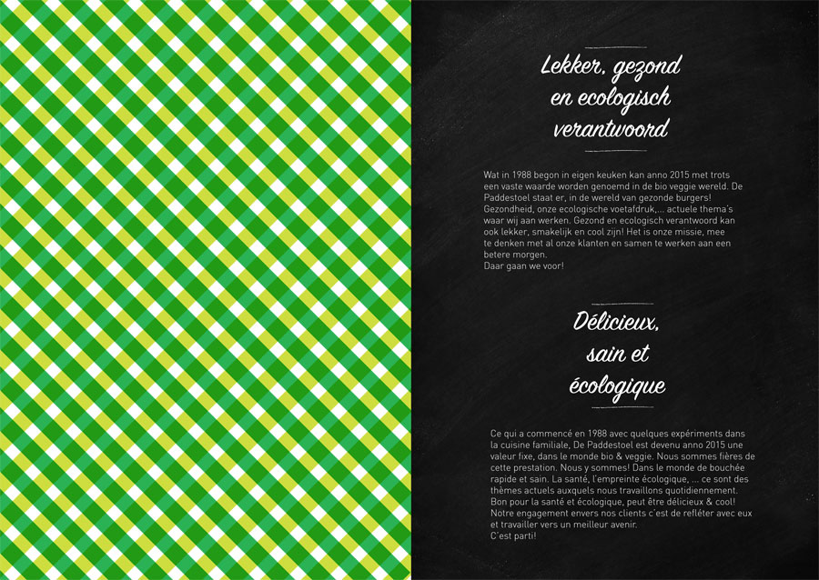 Ce qui a commencé en 1988 avec quelques expériments dans la cuisine familiale, De Paddestoel est devenu anno 2015 une valeur fixe, dans le monde bio & veggie. Nous sommes fières de cette prestation. Nous y sommes! Dans le monde de bouchée rapide et sain.